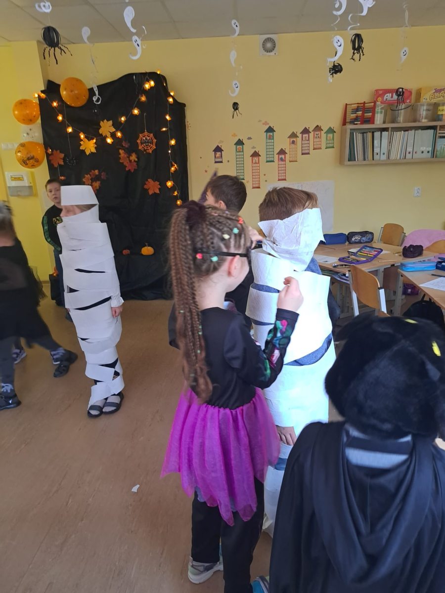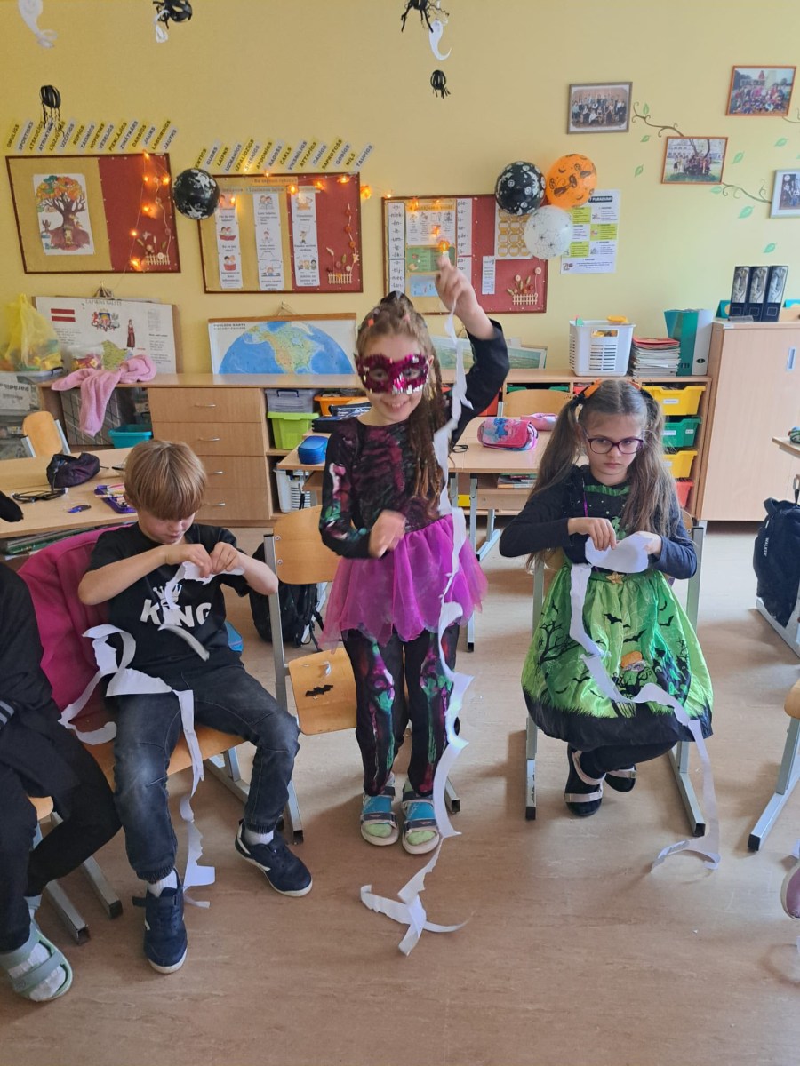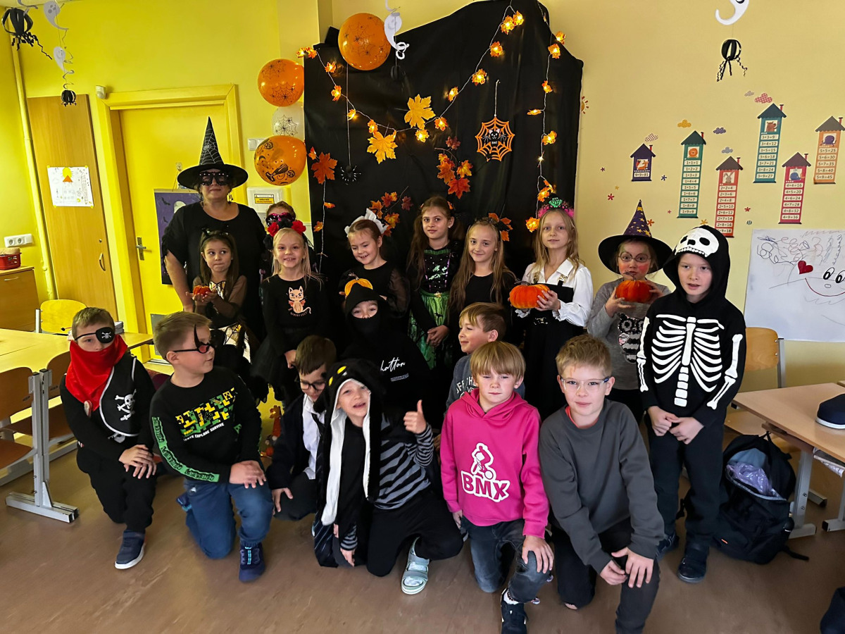 1.b klasei 31.oktobris bija jautra un nedaudz spocīga diena, kad bērni skolā ieradās dažādos tērpos – pārģērbušies par spociņiem, raganiņām, zirneklīšiem, skeletiem vai supervaroņiem! ![]()