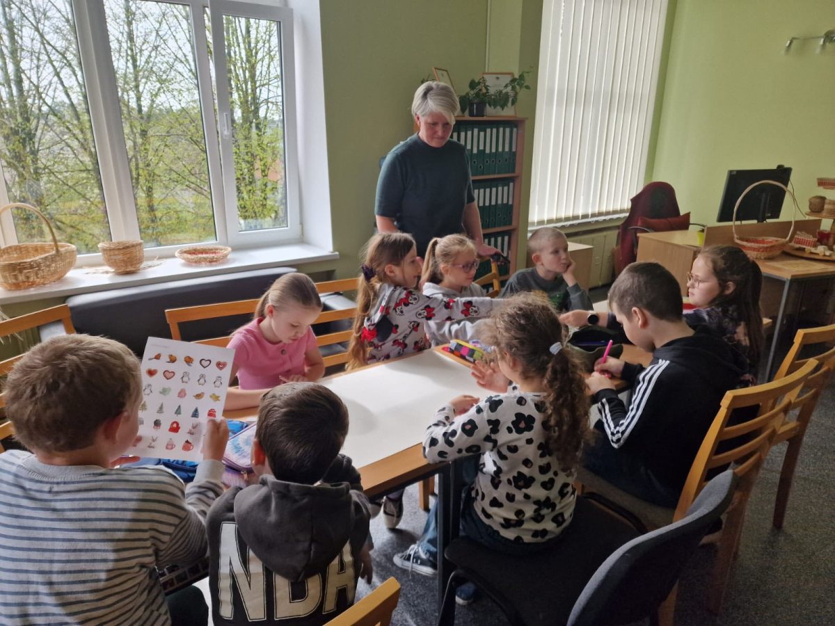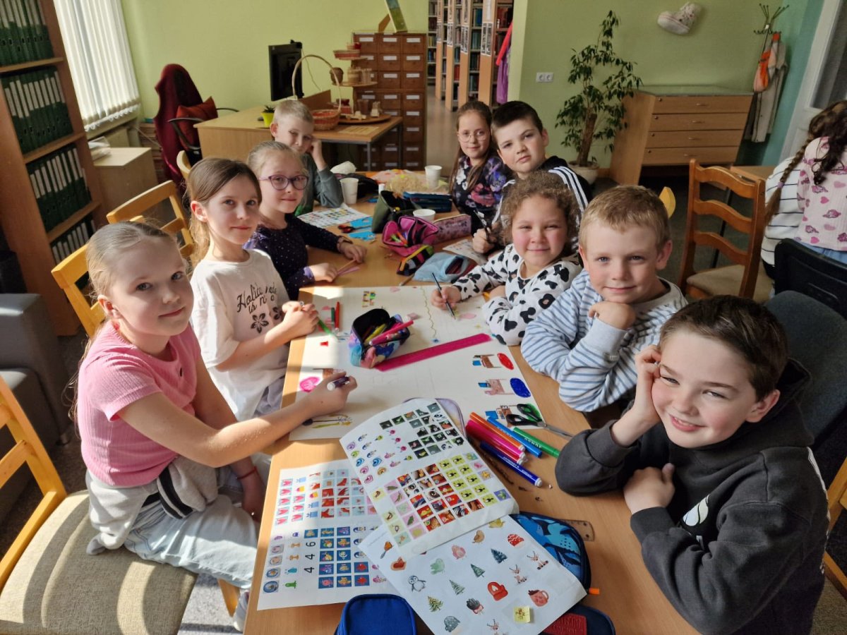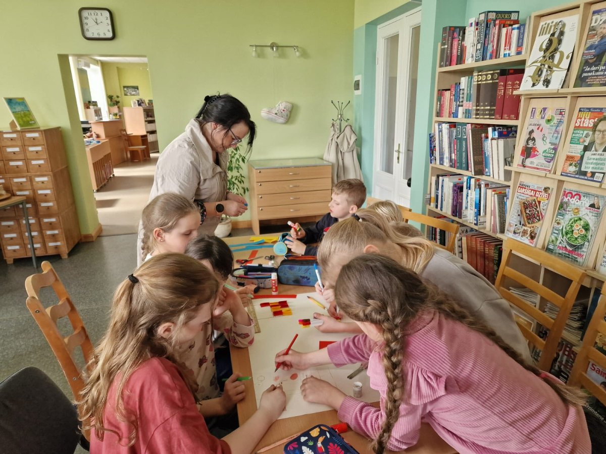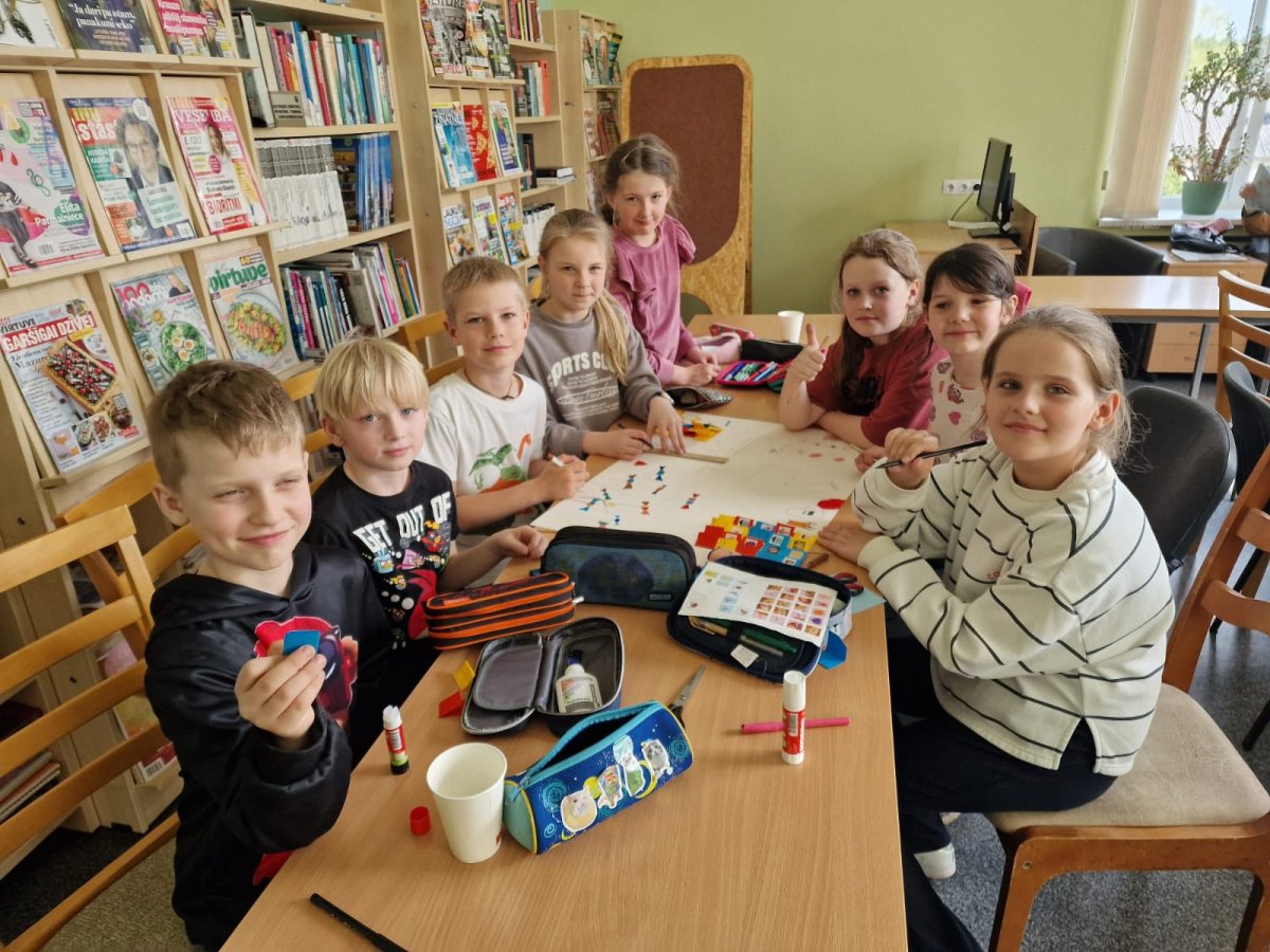 Bērni sadalījās divās grupās un veidoja savu sapņu bibliotēku Brocēnos.
