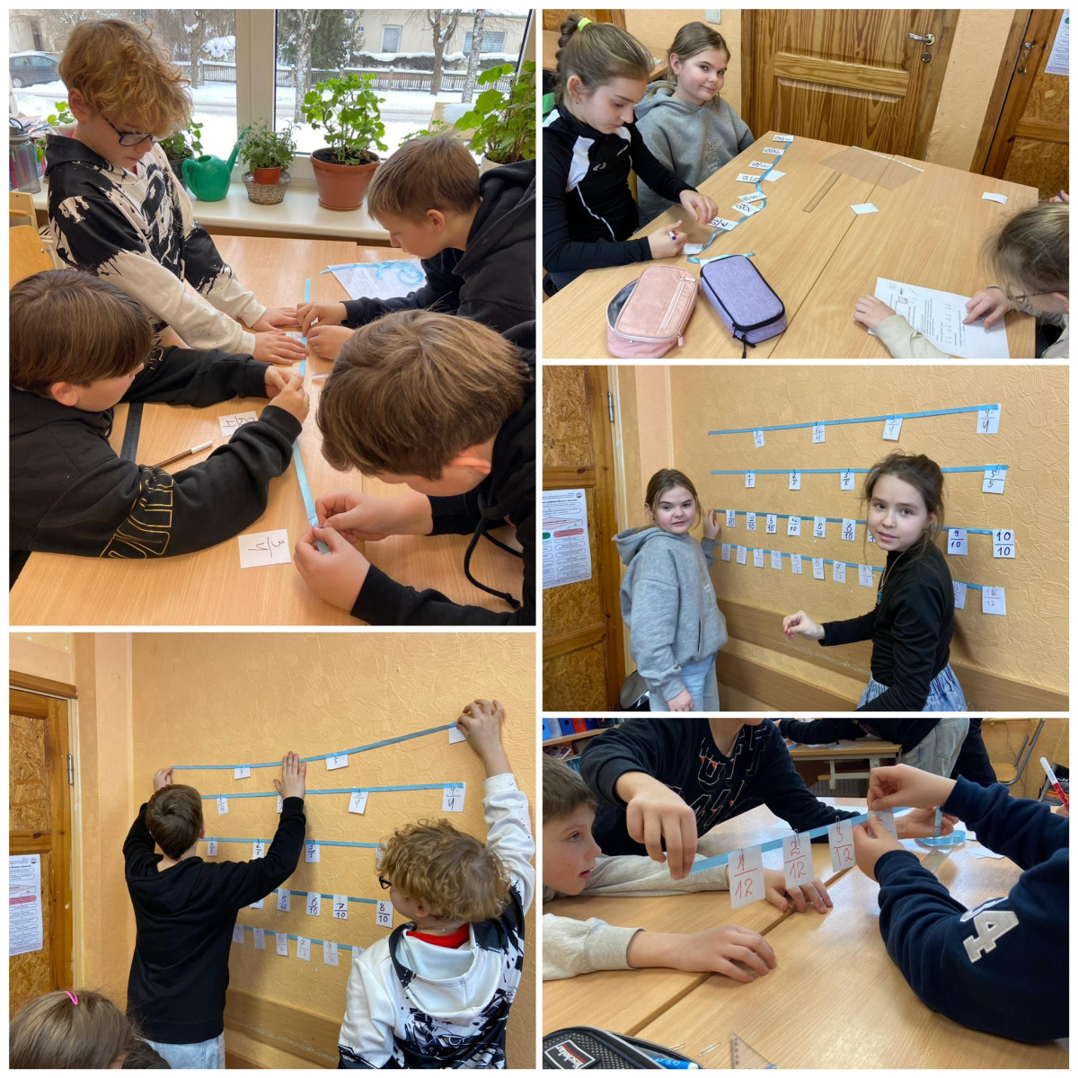 4.a klases matemātikas stundā skolēni mācās aktīvi un praktiski. Arī šodien stundā darbs notika grupās, kur skolēni veidoja uzskates materiālu - atgādni “Daļu žāvētājs”. Praktiskajā uzdevumā bija jāsadala skaitļu taisne (lente) noteiktās vienādās daļās un jāattēlo uz tās daļskaitļi, izprotot to novietojumu. Stundas laikā skolēni nostiprināja prasmi...
