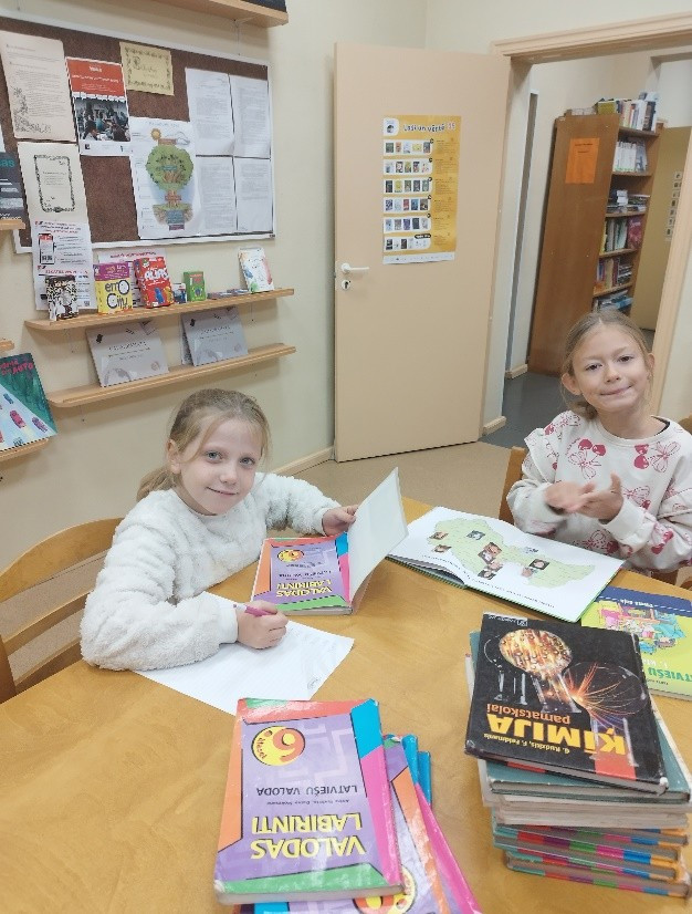 9.b klases skolēni sagatavoja uzdevumus: atrast atšķirības, atminēt krustvārdu mīklas, salikt puzli. Un nogādāja Brocēnu bibliotēkā.