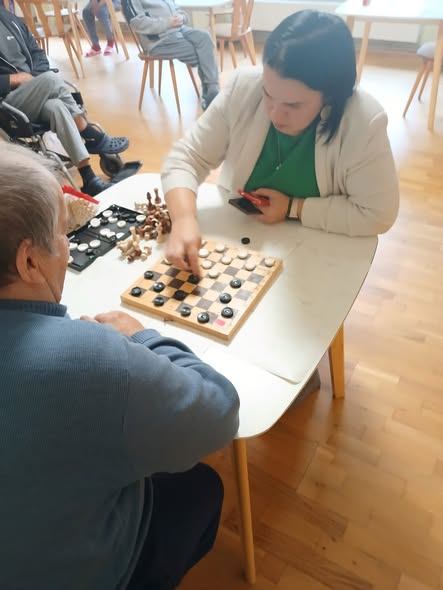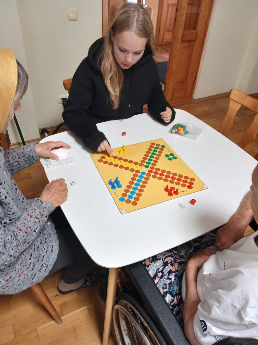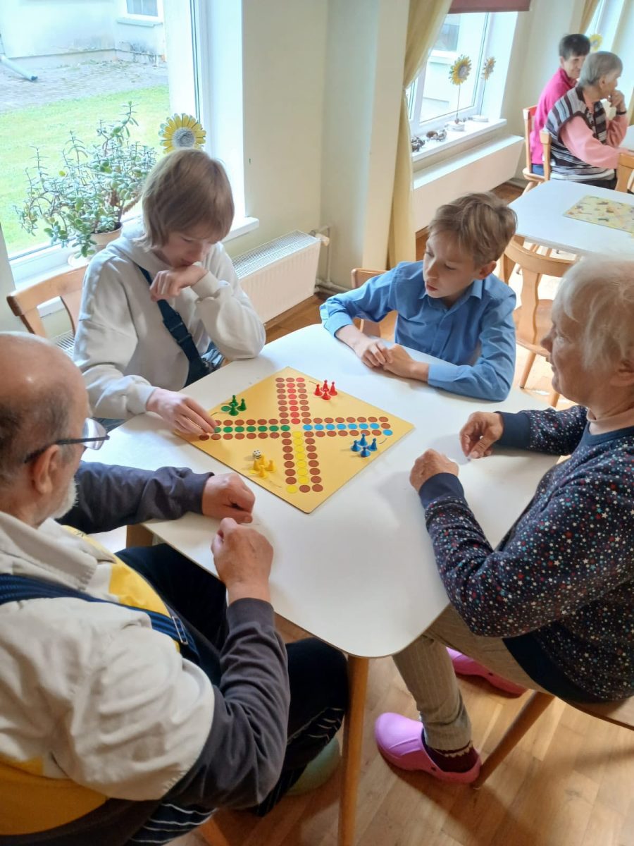 Kopīgi izspēlējām spēles, ieklausījāmies dažādos dzīves stāstos un uzzinājām, kādas nodarbības notiek pansionāta iemītniekiem.