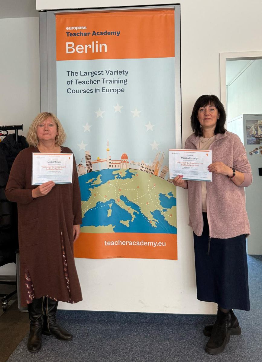Sveicienus sūta skolotājas Dita Dubulta, Daiga Barančane un Svetlana Tarasova no Heraklionas, Grieķijā, kur šobrīd apgūst Erasmus+ kursu “Efektīva komunikācija klasē”. ![]()